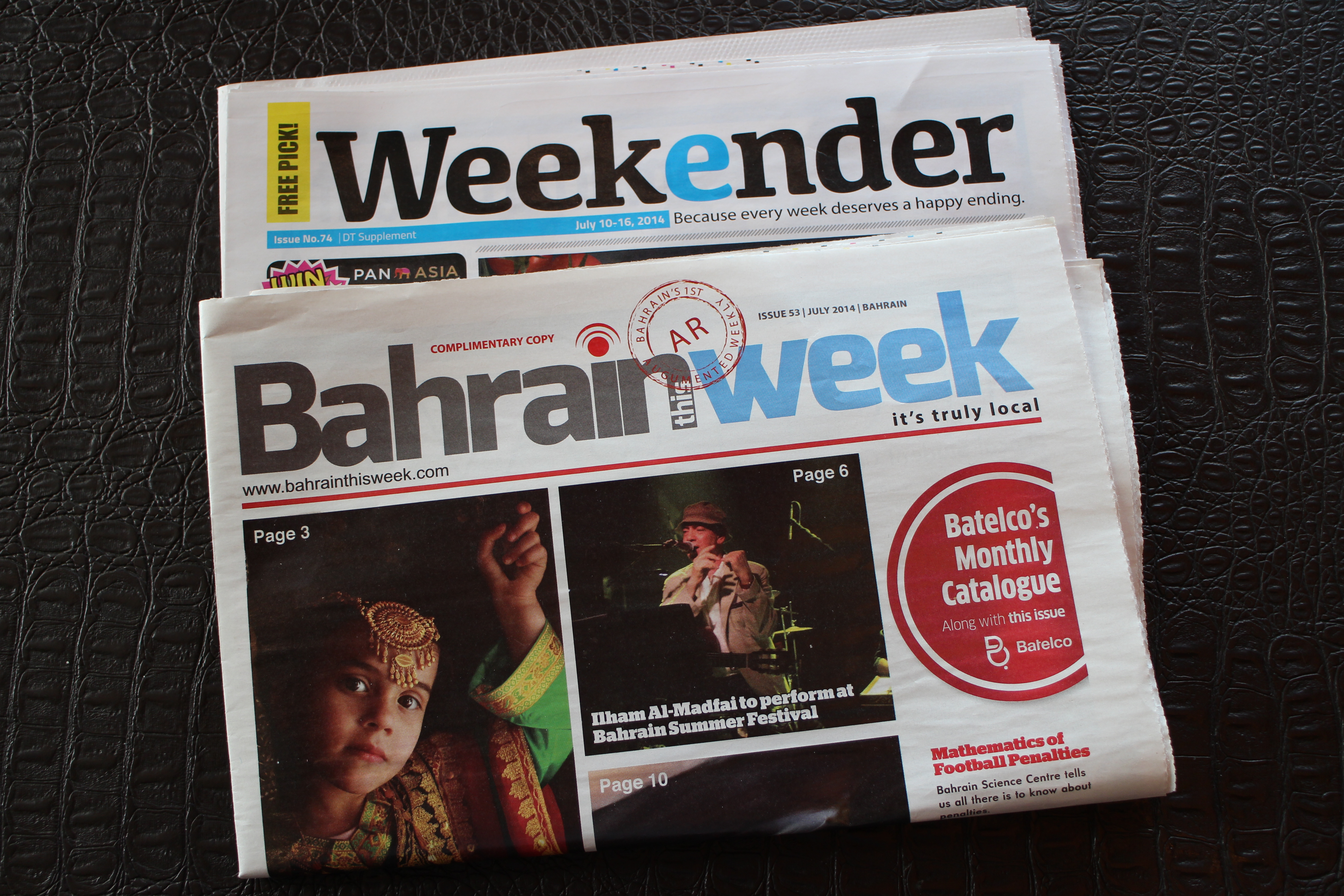 In Bahrain, there are a few publications that are available free of charge: Bahrain This Week, Weekender, and Fab. Bahrain This Week claims to be “the island’s first augmented weekly” and it covers local events as well as some interesting advice on travel, health, motors, and technology. The last few pages feature reviews on books, games, and movie trailers that can be viewed on your smartphone or on your tablet with the GoLive app.